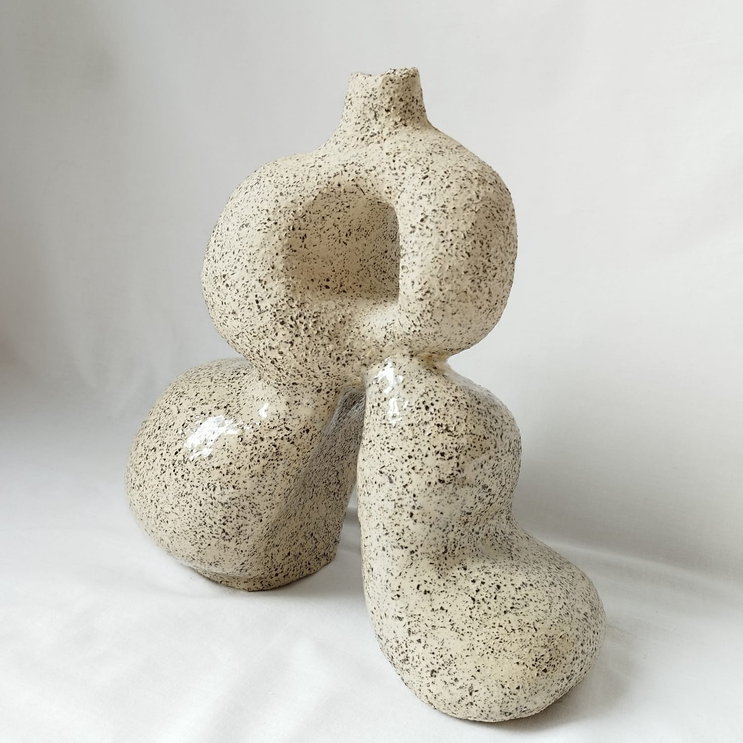 Pieza única hecha a mano en gres crudo con chamota de hierro que le da textura y color especial.
